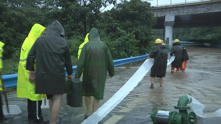郑州市惠济收费站工作人员 张琳:(路政)动用了9台抽水泵,在这里连续不停作业,铲车正在挖引水渠,把车辆引到地势低洼处,然后进行排水。