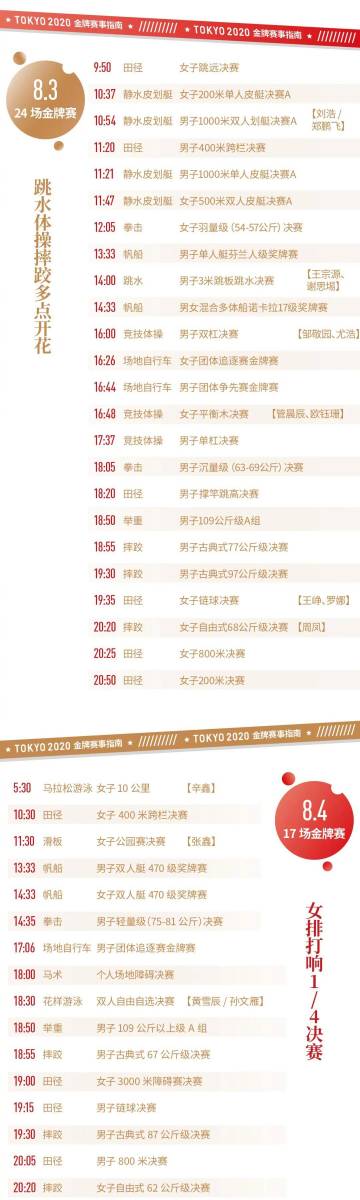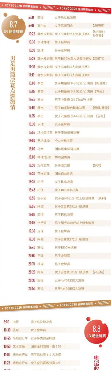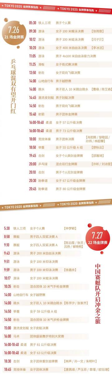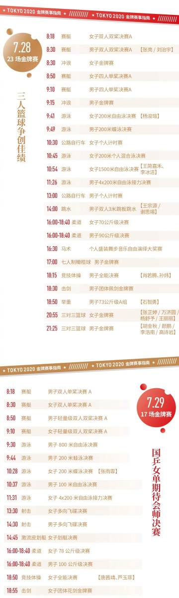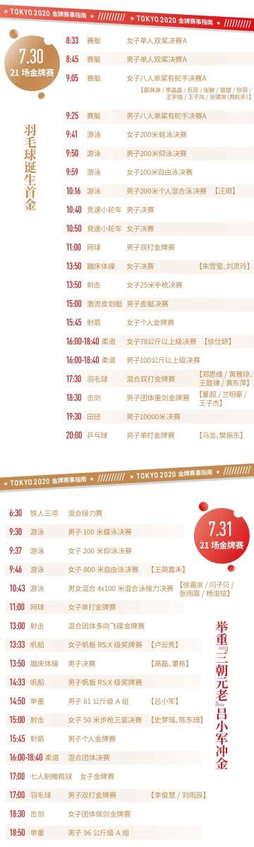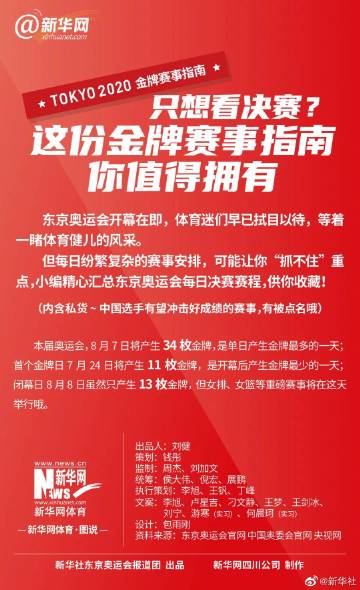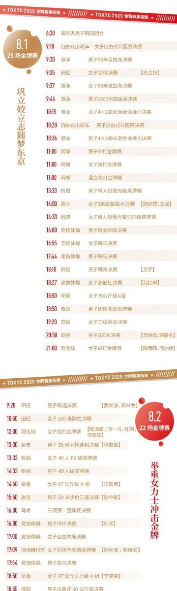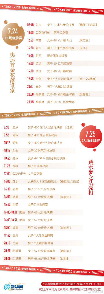【#中国军团奥运金牌赛事指南#】东京奥运会开幕在即,恐怕体育迷们早已拭目以待,等着一睹体育健儿风采。但每日纷繁复杂的赛事安排,可能让你“抓不住”重点。戳图↓精心汇总的#东京奥运会每日决赛赛程#,供你收藏。一起期待#东京奥运会的中国时刻#!
