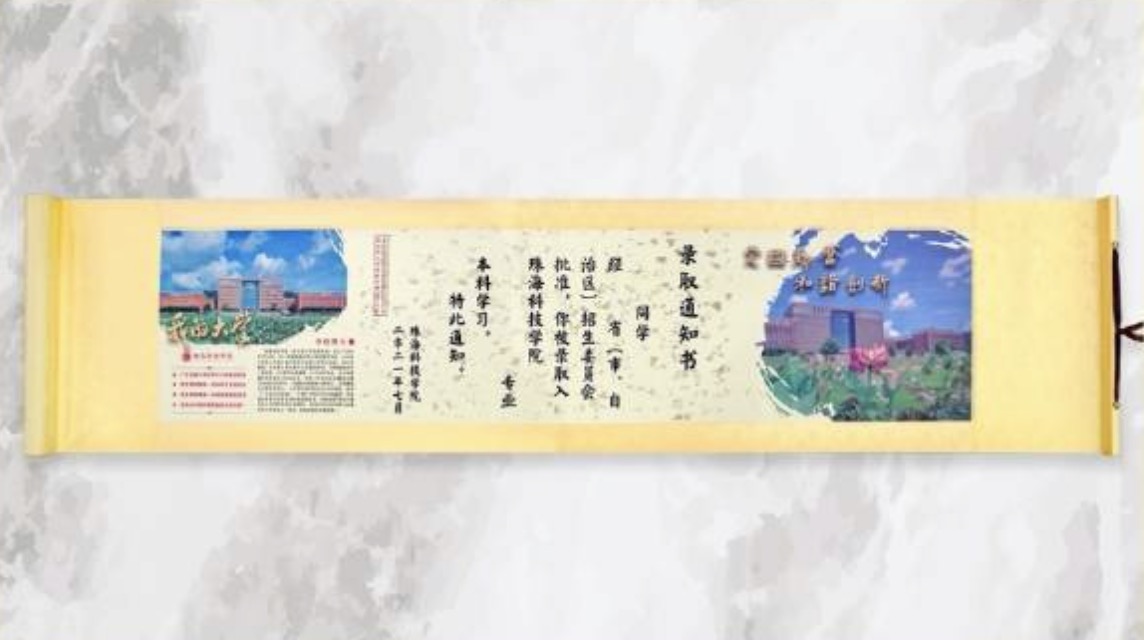 1张卷轴式录取通知书供考生收藏