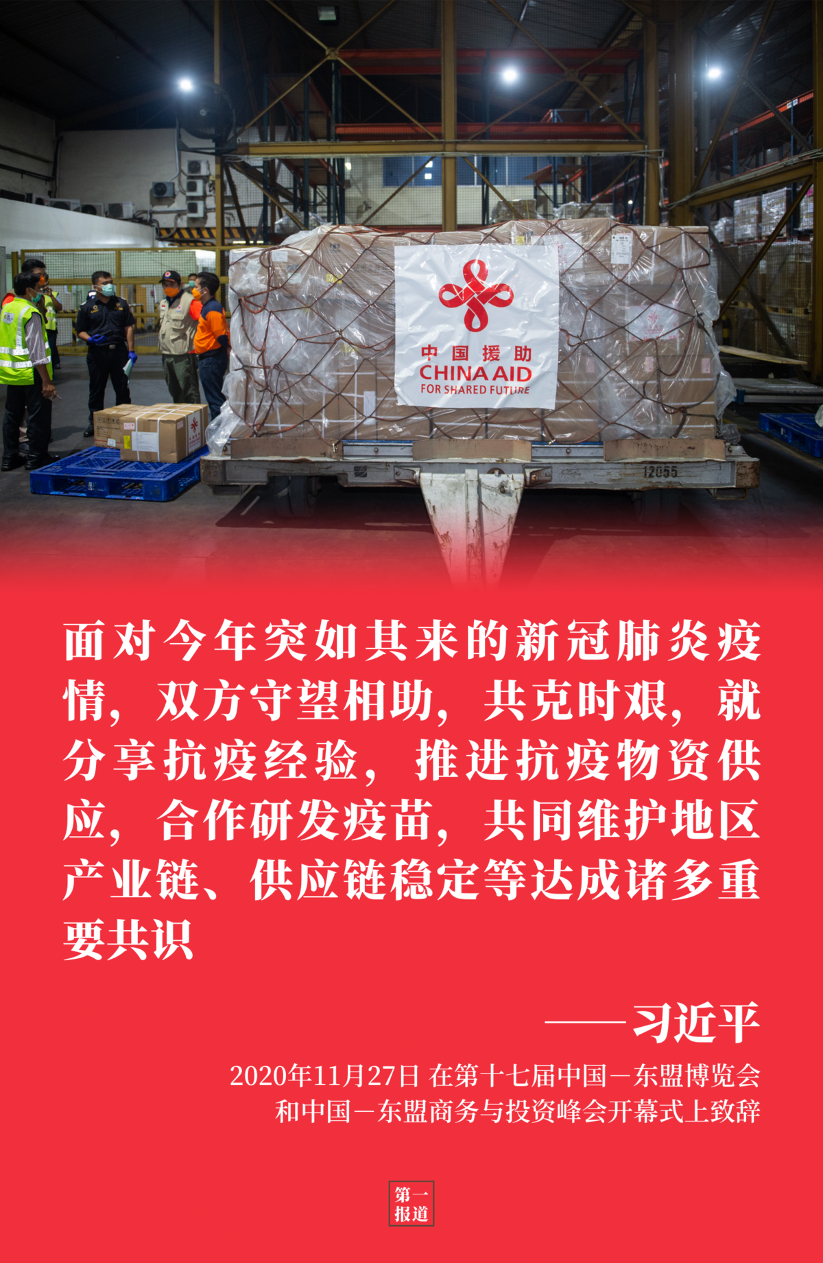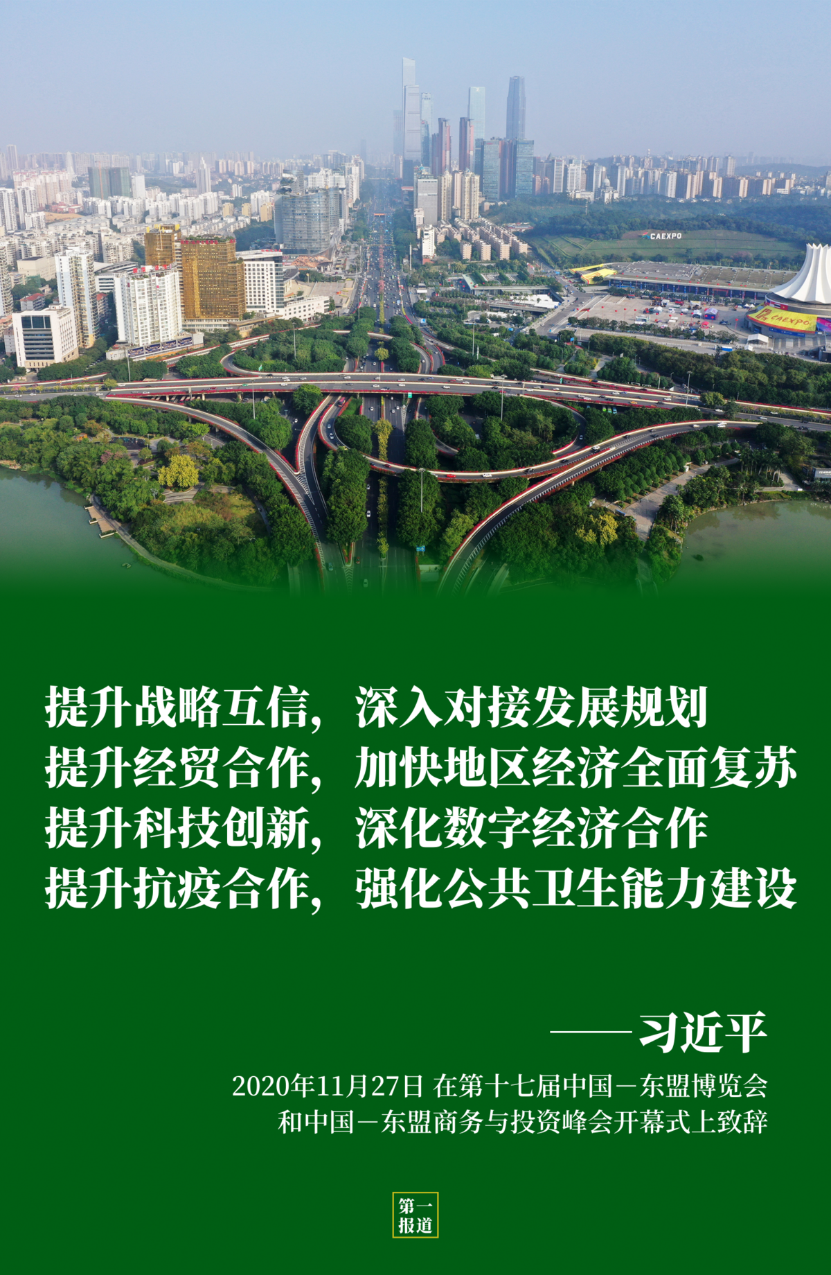 2020年11月27日,国家主席习近平在第十七届中国-东盟博览会和中国-东盟商务与投资峰会开幕式上致辞。