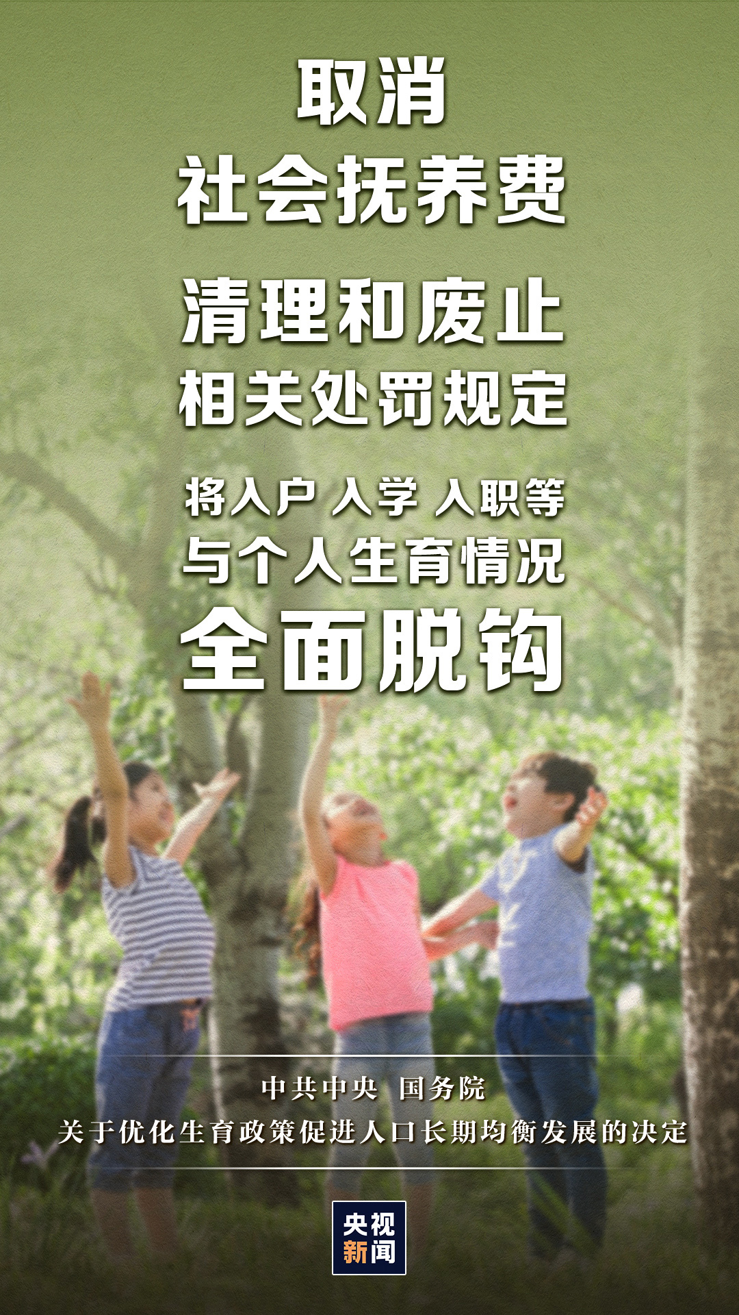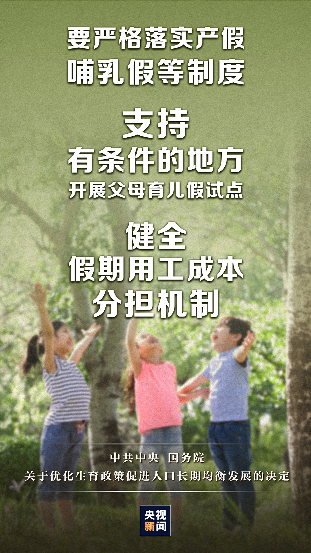 《中共中央 国务院关于优化生育政策促进人口长期均衡发展的决定》今天(20日)公布。重点十大配套措施速览↓
