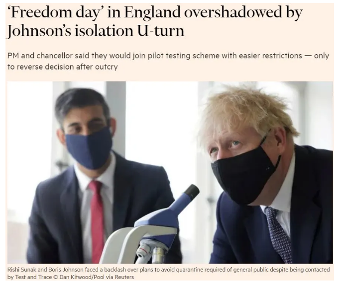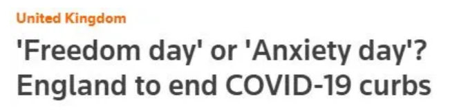 解封,意味着社交距离规则不再有效;聚会人数不再受限;佩戴口罩也只是作为建议,而不再是强制要求……然而对于约翰逊鼓吹的这个所谓“自由日”,英国内外释放出的却是怀疑、忧虑、紧张乃至愤怒……