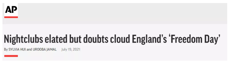 △美联社:夜店又开始了狂欢,但英格兰的“自由日”却被疑云笼罩。