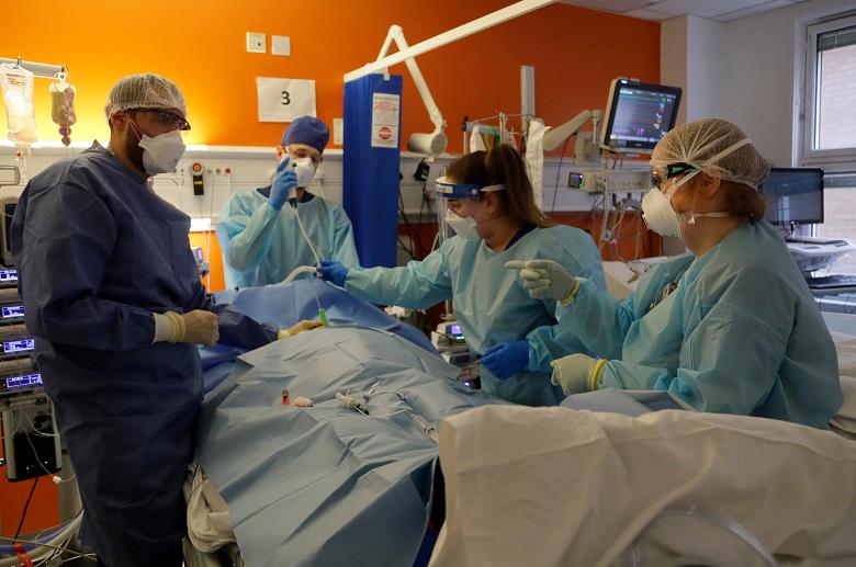 △英国新冠肺炎重症病房的医护人员忙碌异常