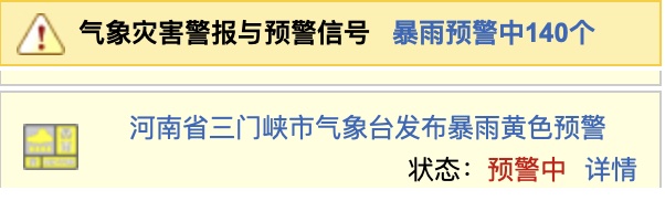 另据中国天气显示,目前全国范围内处于暴雨预警中的城区达140个。