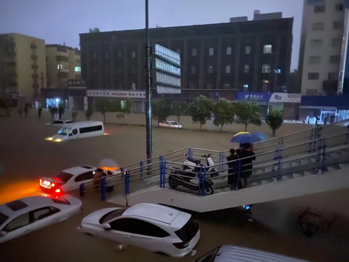 20日,郑州市京广中路附近道路被淹。受访者供图