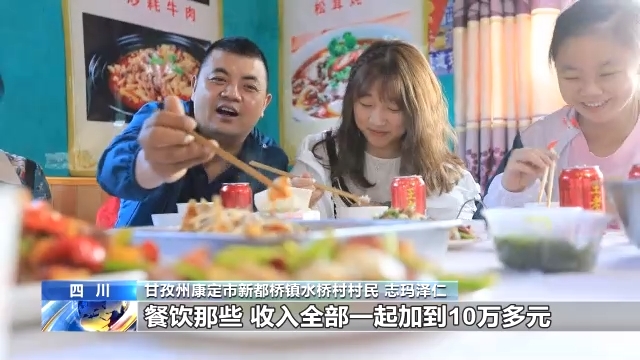 甘孜州康定市新都桥镇水桥村村民 志玛泽仁:我有八间房,一间房子80元,一天有三百四百吧,餐饮那些,全部一起加起来10万多。以前穷得很,旅游的(人)多,318线离我们近得很,现在富起来了。