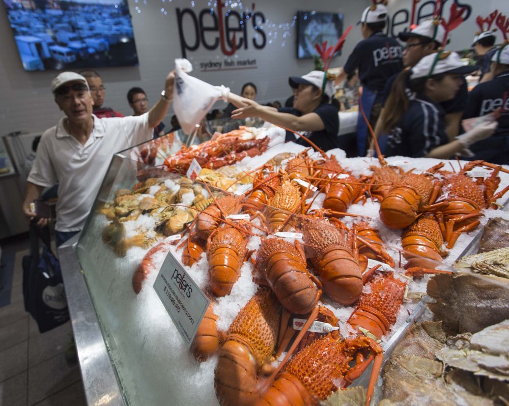 2015年12月23日,在澳大利亚悉尼鱼市场,顾客在选购海鲜。新华社发(朱宏业摄)