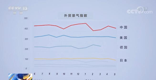 国家信息中心综合多项指标的大数据对主要国家和地区的外贸景气度指数进行测算,这条是中国的,今年上半年,它的外贸景气度一直处于首位,远远好于美国、德国、日本等其他主要贸易大国。