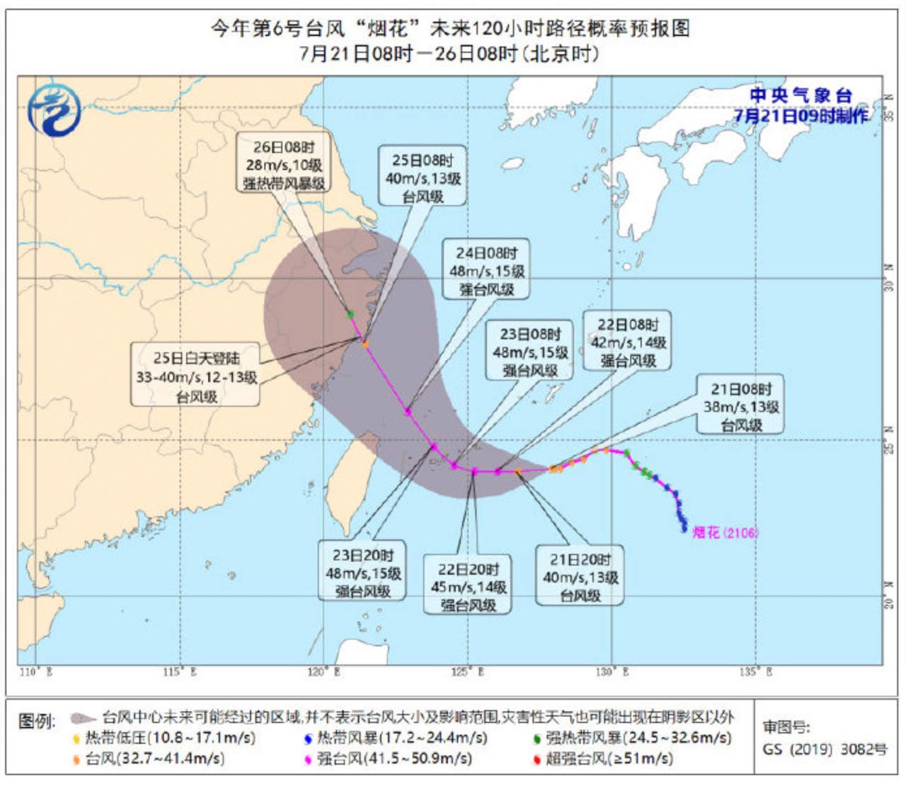 受“烟花”影响,23—25日江苏省淮河以南地区将有中到大雨、部分地区暴雨—大暴雨,风力逐渐增大,陆上风力8—9级、阵风10—11级;江苏省南部沿海海面风力9—10级、阵风12级左右;北部沿海7—8级、阵风10级左右。26—27日,江苏省大部地区仍将有中到大雨、部分地区有暴雨,全省陆上风力7—8级、阵风10级左右,沿海海面风力9—10级、阵风11—12级。(总台央视记者 吴睿)