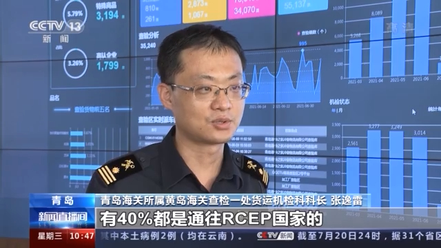 青岛海关所属黄岛海关查检一处货运机检科科长 张逸雷:今年出口的货物中,有40%都是通往RCEP国家的。