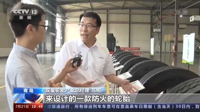 双星轮胎产业总经理 苏明:像这款产品就是专门为马来西亚还有柬埔寨来设计的一款防火的轮胎,最大一个特点,即使在高温情况下,也不会产生自燃现象。