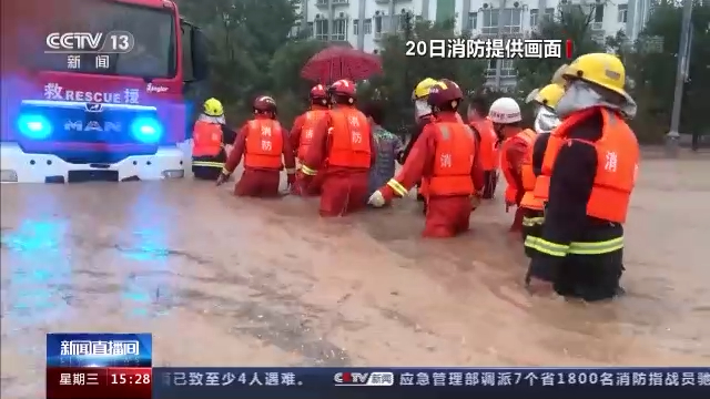 20日上午,河南洛阳一处艺术馆附近一车辆被淹,车内四人被困,其中有小孩在车内。消防人员到达后,立即徒步走到被困车辆处,将躲在车里的四名被困人员救出,并用消防车将他们安全送回家中。