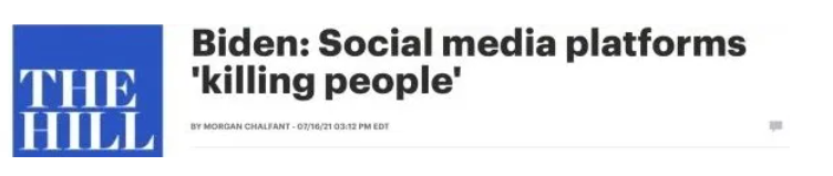 由于疫苗接种率难以提升,当地时间16日,美总统拜登在回答记者有关提问时,将疫苗接种率停滞不前的责任甩给了美国当地的社交媒体:允许有关疫情和疫苗的错误信息在其平台上传播的社交媒体公司正在“杀人”。