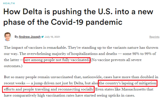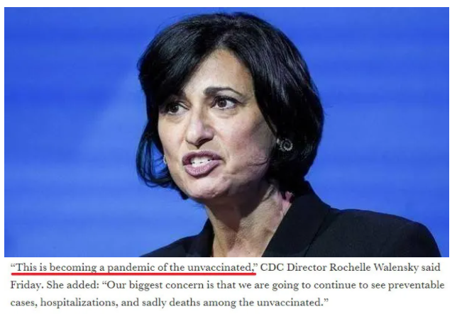 美国疾控中心(CDC)主任罗谢尔·瓦伦斯基一言以蔽之:“这正在成为未接种疫苗者的病毒大流行。”