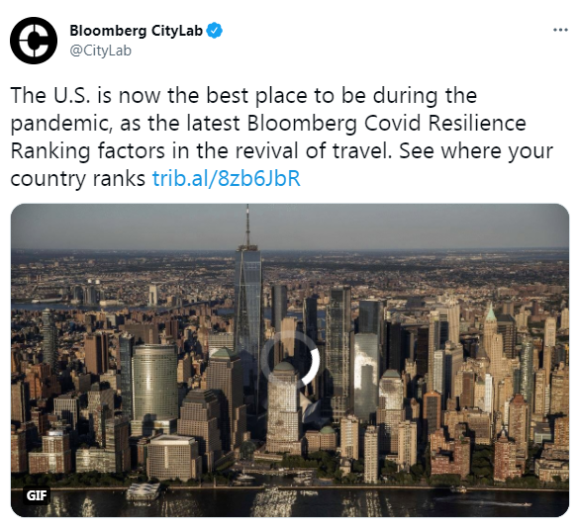 然而就在不久前,美国“权威”媒体彭博社却发布了一个雷倒众生的“全球抗疫排名”。其中,确诊病例和病亡人数在全球均长期高居首位的美国居然排名第一,成为“全球第一抗疫大国”。