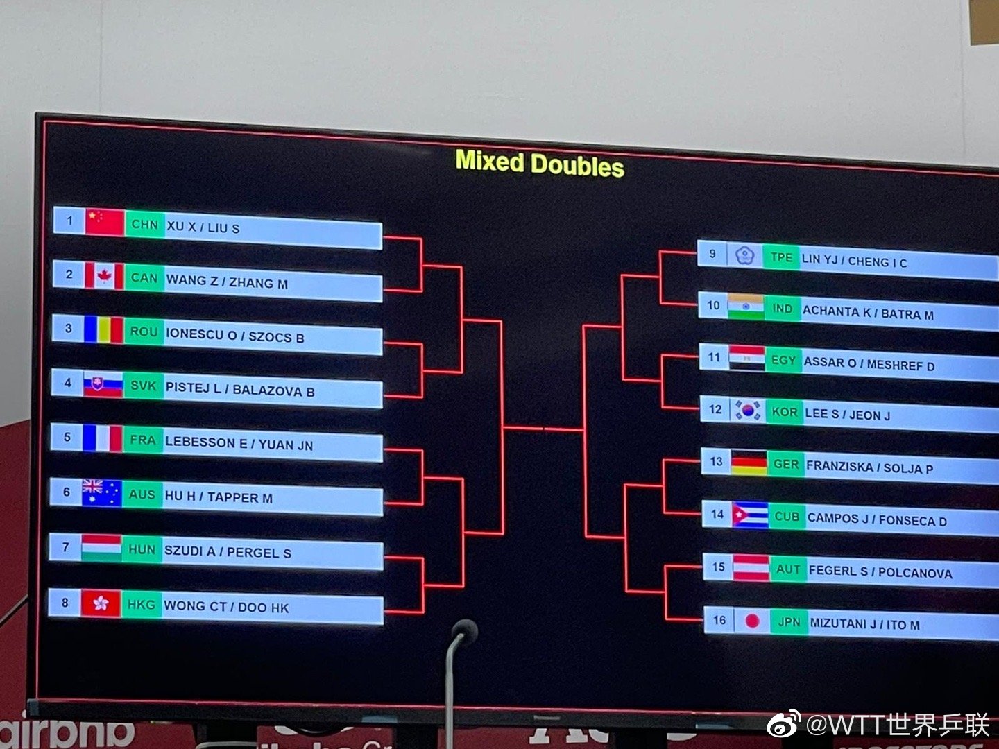 女团上半区:中国-奥地利、法国-新加坡、韩国-波兰、澳大利亚-德国