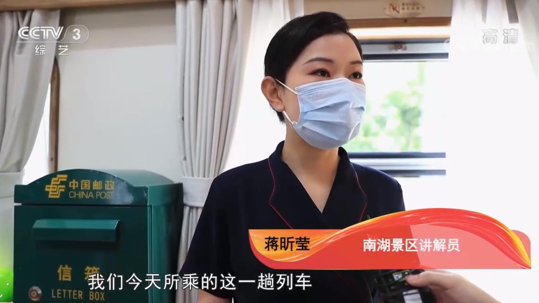 南湖景区讲解员 蒋昕莹:我们今天所乘的这一趟列车,就是专门从上海开往我们嘉兴的一趟,“新时代重走一大路”的一趟专门的列车。我们在这样一个回顾初心的地方,也是设立了这样一个初心邮局。我们也可以看到这边上边也有一句话,邮一封1921年的记忆给自己的亲友。