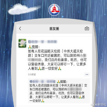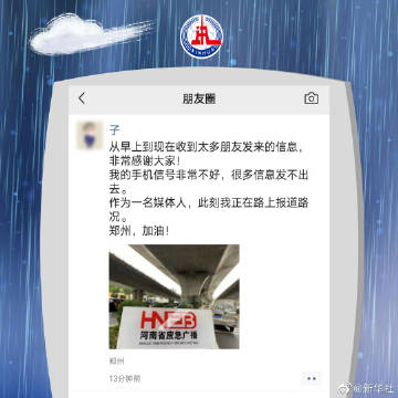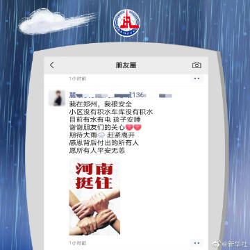 【#河南人民的朋友圈温暖治愈#】连日来,河南遭遇特大暴雨,各方救援正在紧张进行中。洪水无情,人间有爱。危急时刻,河南人民朋友圈里这些朴实无华却直抵人心的文字让中州大地更有温度,支撑着大家一起扛下去!#河南我们跟你一起扛#