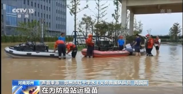 郑州市红十字水上义务救援队队员 周国丽:郑州市红十字水上义务救援队队员在为防疫站运送疫苗。