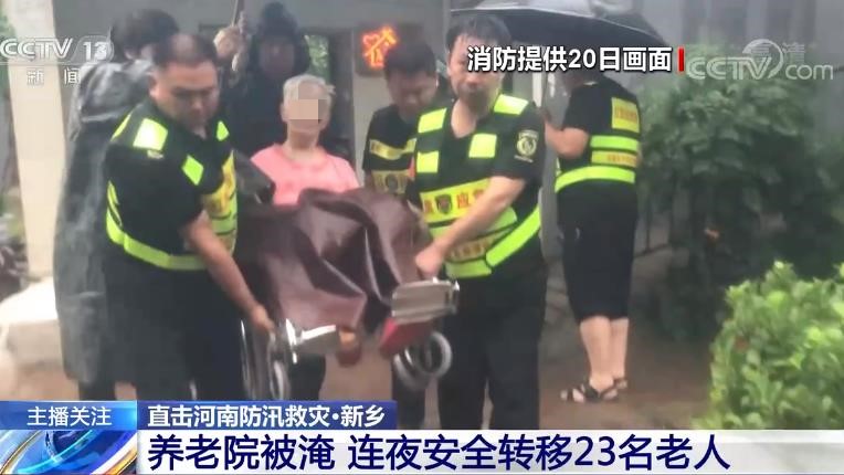 7月20日,受强降雨影响,河南新乡红旗渠一养老院积水严重,23名老人被困,为了确保老人生命安全,当地紧急组织营救。将23名老人全部转移至邻近养老院妥善安顿,整个救援持续了11个小时。