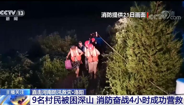 7月21日凌晨4点多,河南洛阳偃师区一处村庄道路被洪水冲毁,9名群众被困在半山腰的房子里,强降雨导致山间道路被淹,洪水深度超过1.5米,水位还在持续上涨。被困9名群众中,有6名老人1名青年和2名儿童。半山腰的民房随时面临着山体滑坡威胁。固定好救生绳索,消防人员划着橡皮艇,来到被困人员家中,先后折返3次,将9名被困群众转移至安全地带。