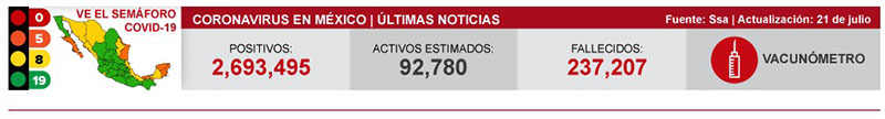 当地时间7月21日,墨西哥卫生部宣布,截至7月21日19时,墨西哥全国新增新冠肺炎确诊病例15198例,累计确诊2693495例;新增死亡病例397例,累计死亡237207例。(总台记者 盛嘉迪 吕兴林)