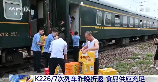 中国铁路郑州局集团有限公司自接到K226/7停靠铁炉车站通知后,立即通知铁炉车站人员加强同列车联系,到周边采买应急食品等物资,及时送上列车。同时积极联系地方政府部门协助救援供餐,并组织人员到附近超市采购物品,分批次送至车站向列车供餐,配合列车工作人员安抚旅客,解决困难。21日21时10分,K226/7自铁炉车站开车,折返回广州。停靠车站期间,共收到5批来自铁路和政府部门的官方物资,7批来自学校、武警官兵、电商和附近市民自发捐赠的物资。