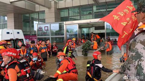 #冲锋舟进入郑州阜外华中心血管病医院转移病患# 【#新华社记者直击阜外华中医院大转移#】现场图片来了!