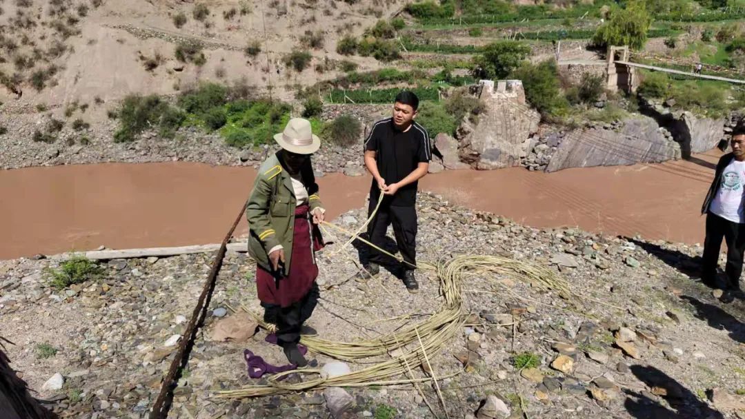 每逢进藏马帮数量多时,江岸人马蜂拥,帐篷连接,煞是热闹。村民每天不停地编织,但还保证不了马帮的需求,因为一根竹篾溜筒的使用寿命只有一个星期,而且更换一根溜索至少要耗费15天左右时间。