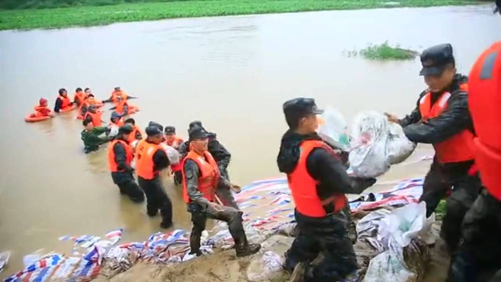 7月21日12时20分许,持续强降雨导致河南省新乡市共产主义渠获嘉段发生管涌,情况十分危急,武警河南总队新乡支队紧急出动100名官兵,赶赴抗洪抢险一线。