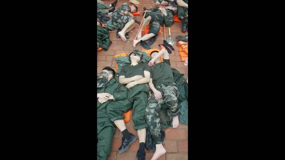 武警郑州支队官兵经过连续12个小时的奋战,加固堤坝300余米,成功处置多处泡泉、管涌,有效控制常庄水库险情。经过连续高强度作业后,官兵就地进行休整,随时准备应对下一步突发情况。