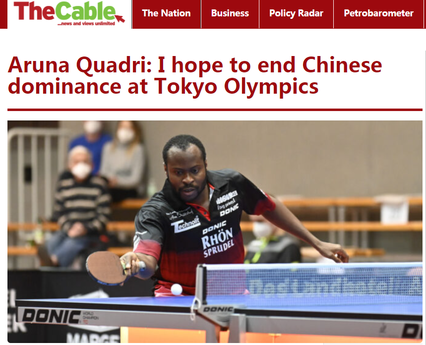 参加2020东京奥运会的尼日利亚乒乓球队队长夸德里·阿鲁纳近日已抵达日本。当地时间7月18日,他在接受媒体采访时放出豪言称要在本次奥运会上“击败中国男乒”,夺得奖牌。夸德里·阿鲁纳是谁,尼日利亚的男乓水平如何?