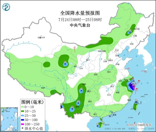 另外,随着今年第6号台风“烟花”的增强,华东沿海一带也将出现强风雨天气。中央气象台今早继续发布台风蓝色预警,预计,“烟花”将以每小时5~10公里的速度向西偏北方向移动,强度逐渐加强,最强可达超强台风级,23日夜间移入东海东南部海面,然后转向西北方向移动,逐渐向浙江北部到福建北部一带沿海靠近,并将于25日白天在上述沿海登陆;目前尚不能完全排除在浙江近海海面北上的可能。