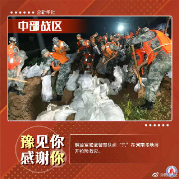 【驰援!#豫见你感谢你#】河南暴雨来袭,牵动亿万人心。部队官兵、消防指战员……他们星夜驰援!风雨面前,共渡难关;危难关头,万众一心。不管遇到什么困难,在每个人的身后,都有一个强大的祖国,这就是中国人的团结,这就是中国人的力量,#你可以永远相信中国#! #河南加油河南挺住#(设计:盛瑞丽)