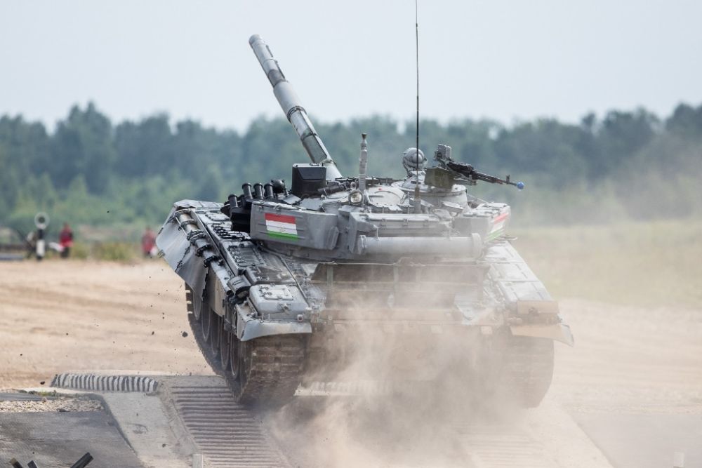2017年7月29日,在俄罗斯莫斯科郊外,塔吉克斯坦代表队参加“坦克两项”赛。(新华社记者吴壮摄)