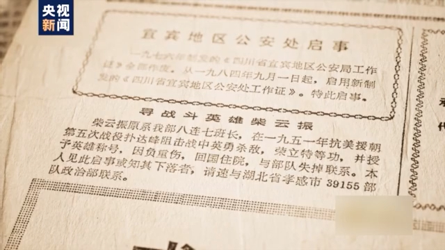柴云振所在的部队一直在寻找他,得知他好像是四川人,先后两次在《四川日报》上刊登寻人启事。