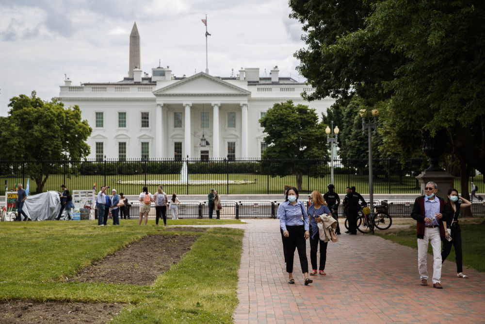 5月17日,人们在美国首都华盛顿的白宫附近游览。新华社发(沈霆摄)