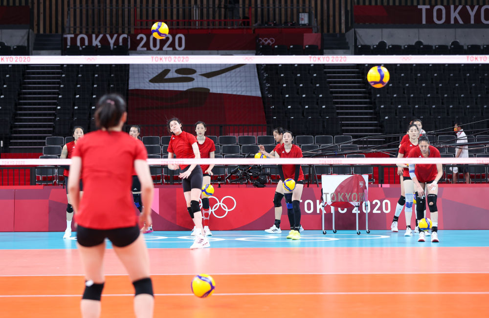 7月21日,中国女排队员在训练中。新华社记者丁汀摄