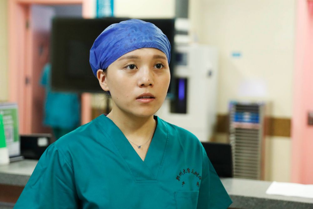 ↑这是7月22日拍摄的郑州大学第三附属医院产房助产士董留琛。新华社发(何五昌 摄)