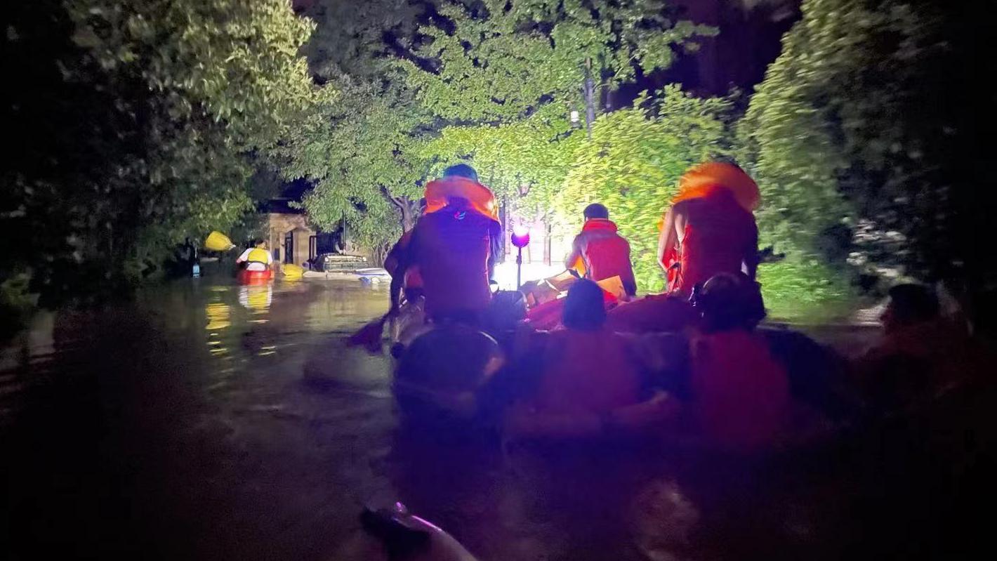 作为皮划艇激流回旋退役运动员,马成龙和同事们利用自己的专业技能和优秀的身体素质,支撑受困群众走出险境。