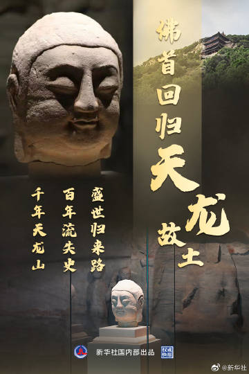 【#权威快报#|#天龙山佛首回归山西故土#】记者从国家文物局获悉,24日,天龙山石窟“第8窟北壁主尊佛首”正式回归原属地,亮相当日在太原市天龙山石窟博物馆开幕的“复兴路上 国宝归来”特展,并在此长期陈列展出。它成为近百年来第一件从日本回归天龙山石窟的珍贵流失文物。(记者施雨岑、王学涛、徐伟;海报设计杨轶群)