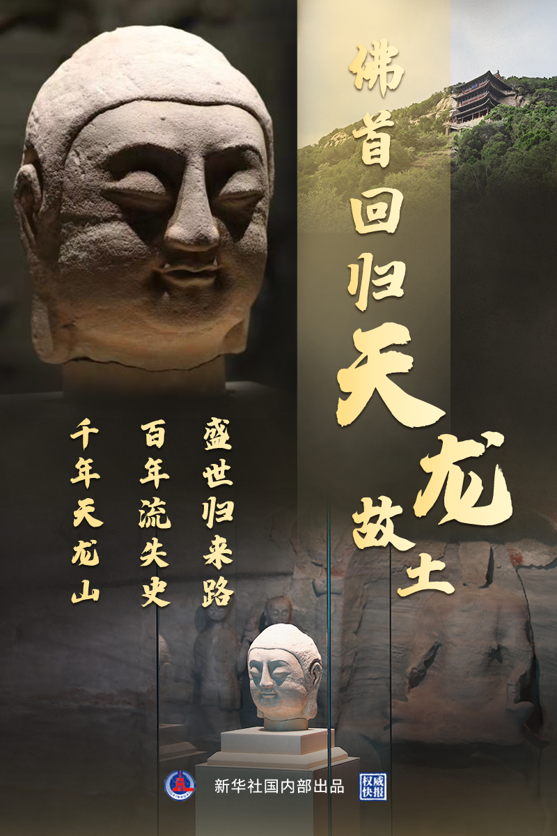 24日,天龙山石窟“第8窟北壁主尊佛首”正式回归原属地