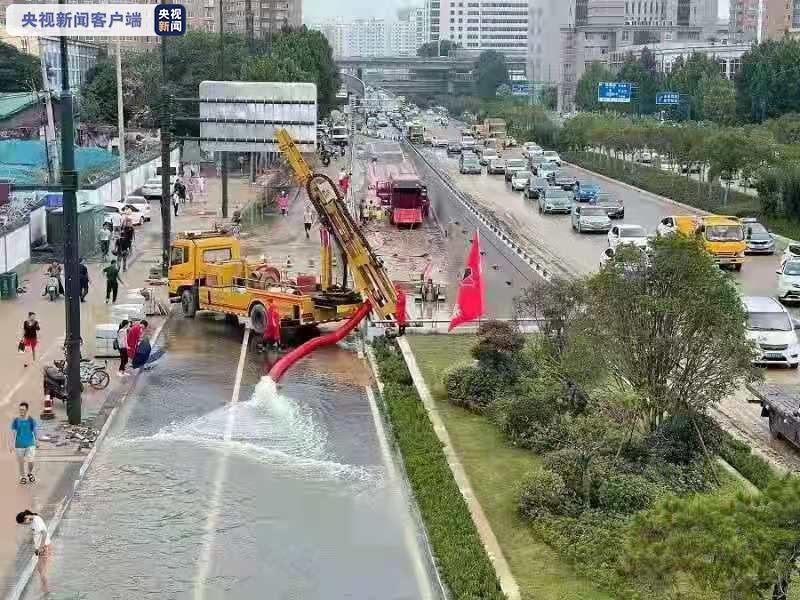 郑州方向进行排涝。抢险救援队在京广路南隧道实施抽排水作业,动用子母车抽水9小时,13500方,累计抽水43500方。高空龙吸水抽水8个小时,12000方,累计31500方。目前,该区域水位下降明显,排水作业基本完成。
