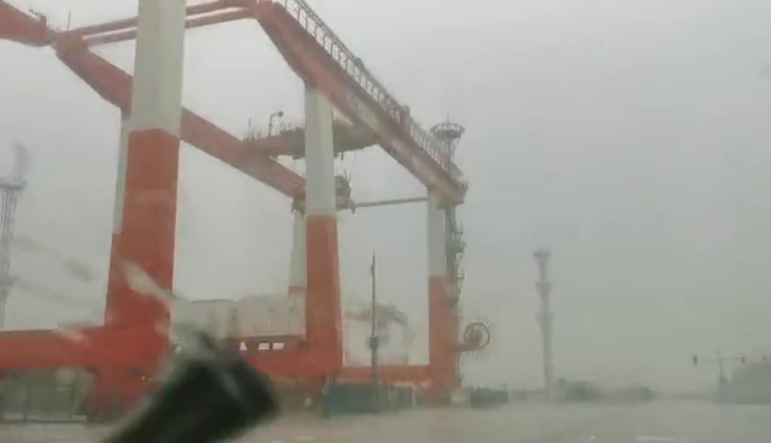 受其影响,洋山港区所处的舟山沿海海面风力已达10级,并且风力还在持续增强过程中,预计最大风力可达15级,并伴有暴雨。