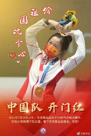 【#用奥运金牌对祖国比心#】五星红旗升起、国歌奏响,中国奥运军团是此刻东京最亮的星!奥运冠军杨倩,你对祖国的比心已收到!#中国奥运军团迎来00后时代#