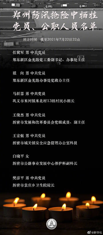 沉痛悼念!#郑州7名牺牲党员干部名单公布#
