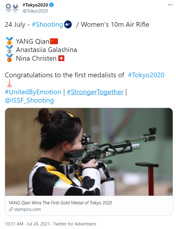 全球众多网友向杨倩表示祝贺