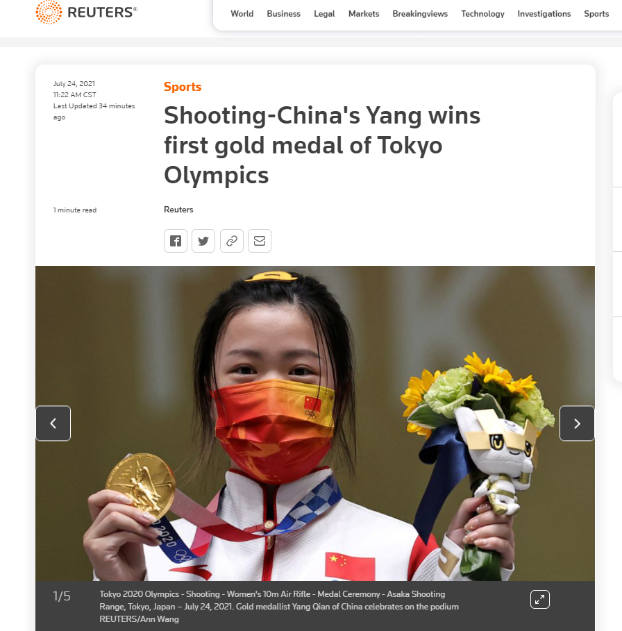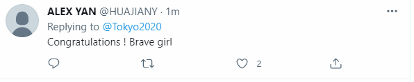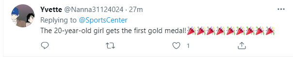 东京奥组委官方账号第一时间在推特上公布了这一消息。随后这一消息瞬间引爆了海外媒体,外国网友评价她“天呐!00后”“真棒”“她真淡定”,并配了各种动态图向她表示庆贺。