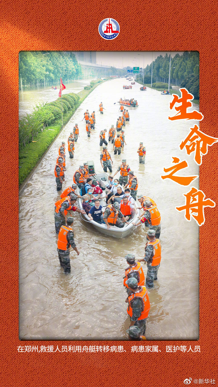 【洪水中的生命之舟】 同舟共济,我们共渡难关!中国人的团结互助刻在骨子里。豫见你感谢你!